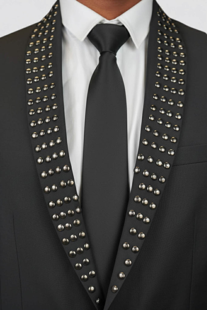 Aubrey Skinny Fit Black Metal Studded Wool Jacket Twisted Tailor