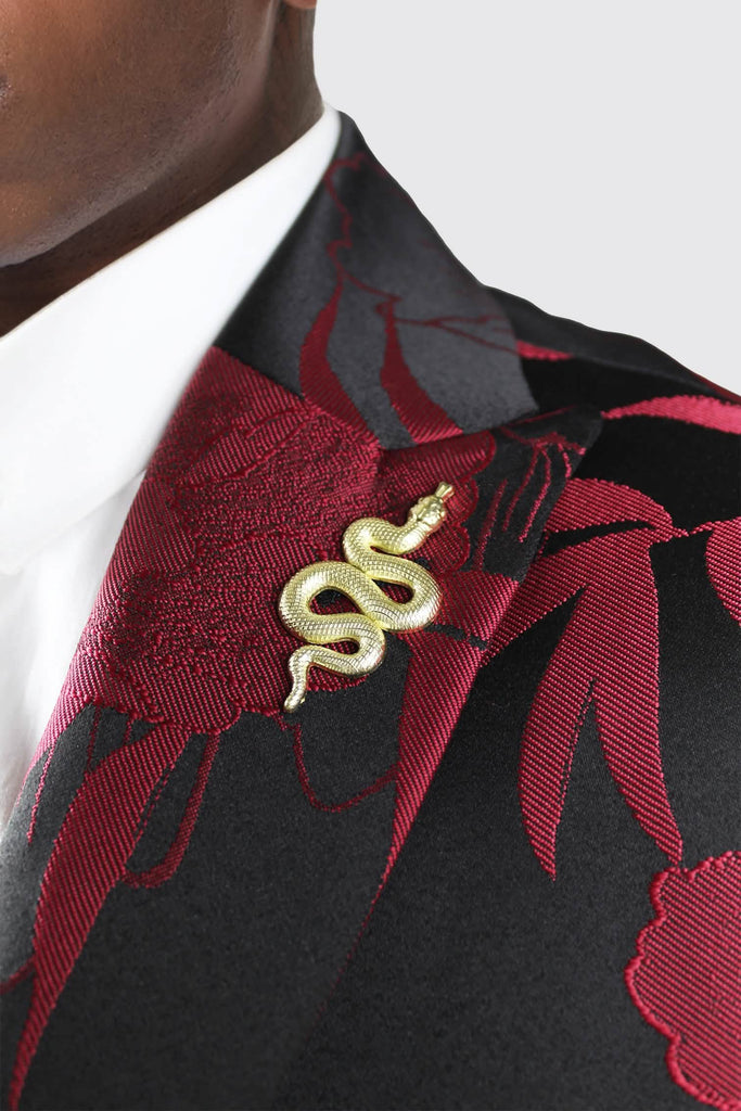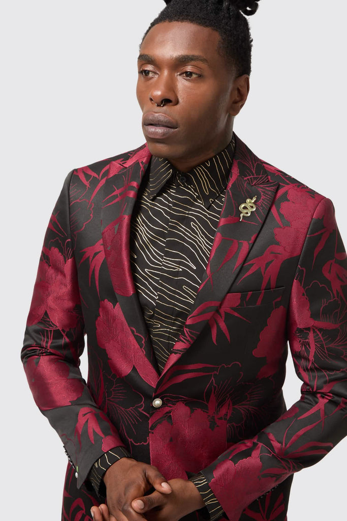 Ramos Slim Fit Red Floral Jacquard Suit Jacket With Gold Detailing Twisted Tailor