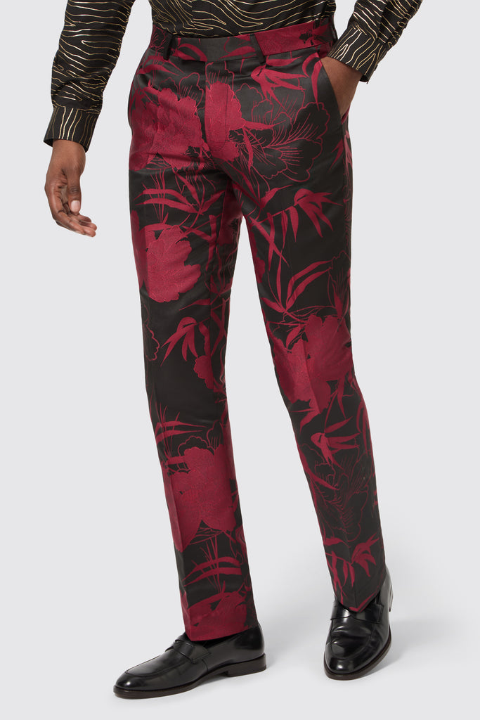 Ramone Slim Fit Red Floral Jacquard Trouser Twisted Tailor