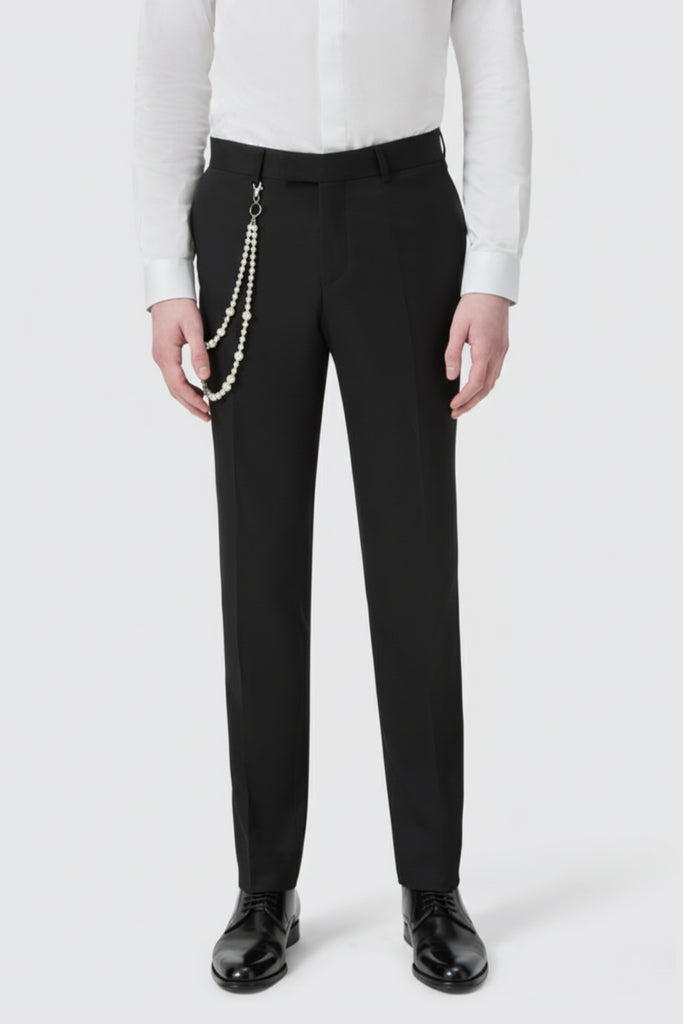 Tyson Slim Fit Black Tuxedo Suit Trousers With Pearl Chain Twisted Tailor