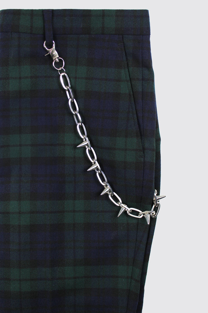 Viscous Skinny Fit Green Tartan Trousers with Chain Detail Twisted Tailor