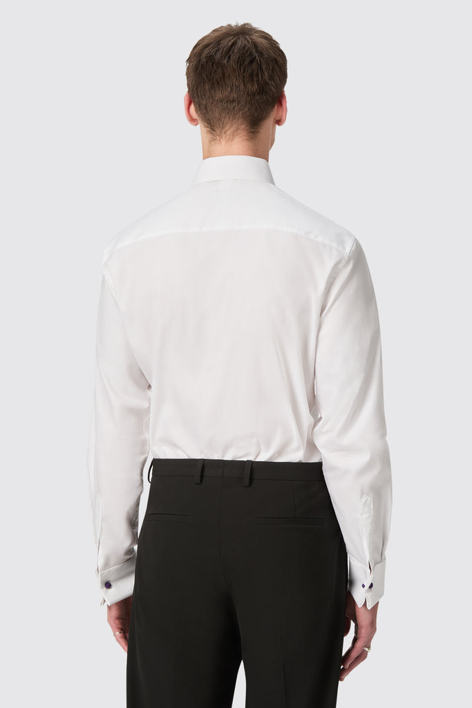 Enhance your wardrobe with the Sarre white cotton dress shirt and enjoy the perfect blend of luxury, comfort, and timeless style. The Sarre shirt is the latest addition to the Without Prejudice collection and offers a timeless appeal. The shirt offers a touch of luxury and sophistication, remaining stylish season after season and suitable for various occasions. The shirt features a regular collar, double cuff, contrast bib and is cut to a tailored fit. Perfect for both formal events and upscale casual settings. Pair the Sarre shirt with a suit for a distinguished look or with tailored trousers for a smart, relaxed style.