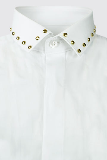 Leigh White Double Cuff Shirt with Gold Studded Collar