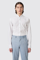 Saunders Slim Fit Grandad Collar White Linen Shirt