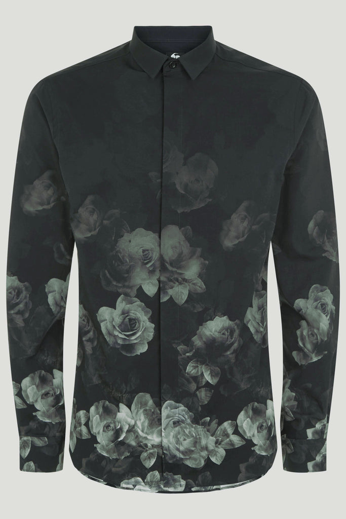 Kember Slim Fit Black Floral Shirt