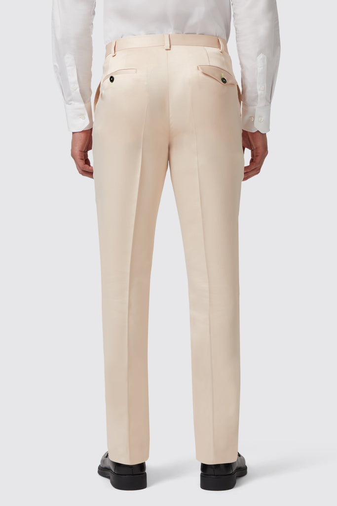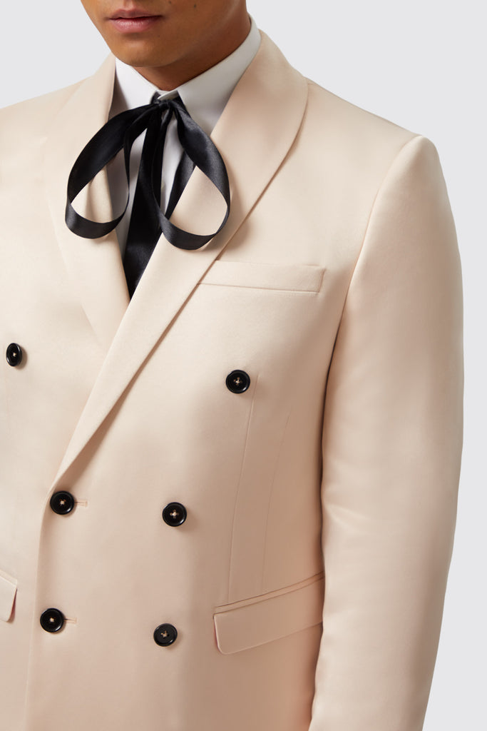 It's time to feel sophisticated with a little help from The Lewis suit in champagne. Why wear any other suit jacket than this one? Up your style game to the next level with this party number. The Lewis double breasted jacket features a shawl lapel, jet pockets, an outer breast welt pocket and kissing buttons on the sleeves. The colour champagne makes this suit the perfect choice for popping bottles in. Pair the jacket with the matching suit trousers to complete the full look.