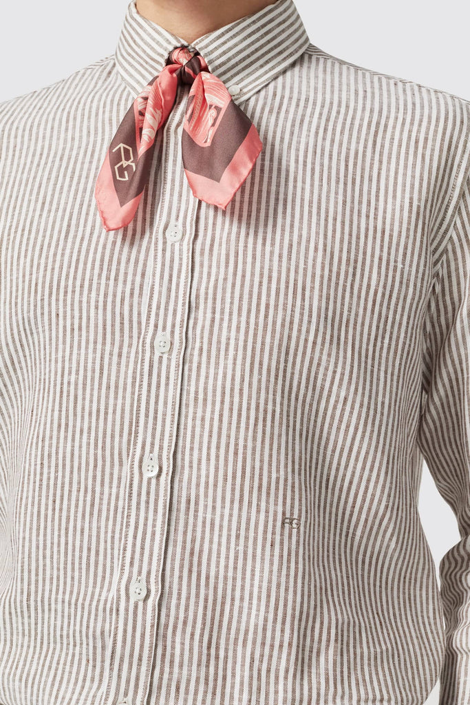 Jermyn Point Collar Button Down Brown Stripe Linen Shirt