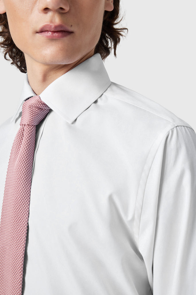 Lewes Slim Fit Spread Collar White Cotton Shirt