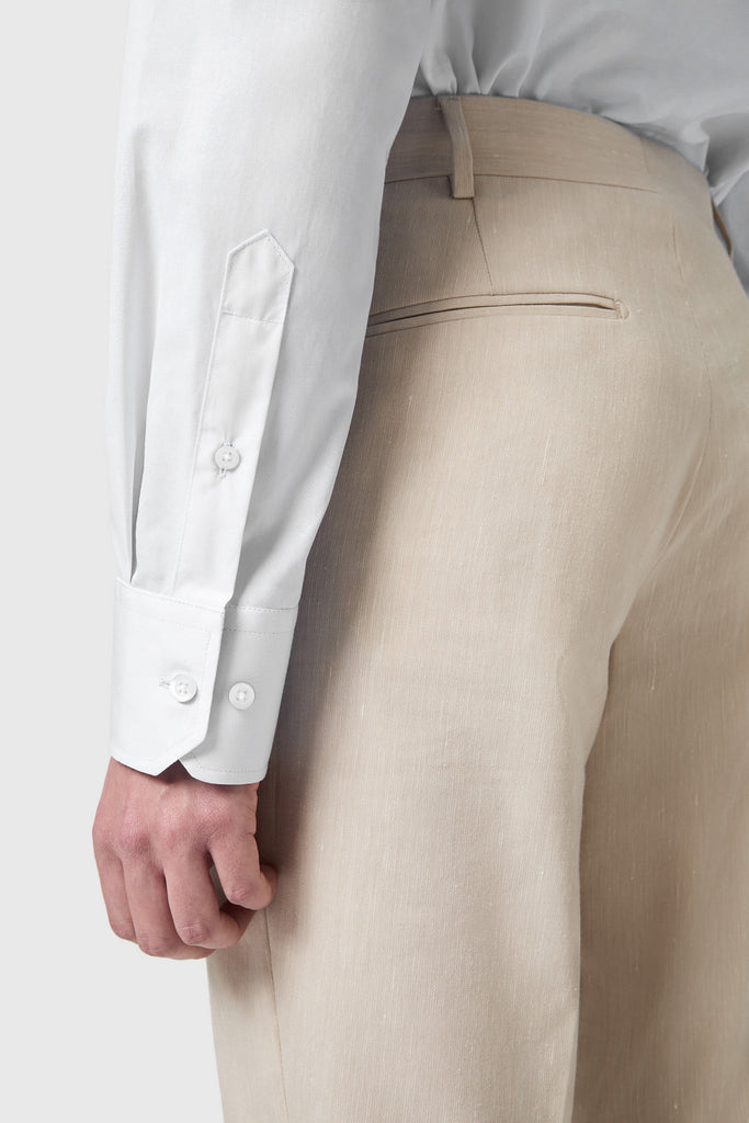 Tie your look together with a crisp white shirt cut to perfection. The Lewes slim fit white cotton shirt will have you feeling on form from the minute you button it up. Crafted from a soft cotton, the shirt is trimmed with a single cuff spread collar and a single mitred cuff. Pair the shirt with your most-loved tailoring pieces and a pair of smart shoes to complete the full look.