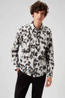 Burgess Skinny Fit Black Leopard Print Cotton Shirt