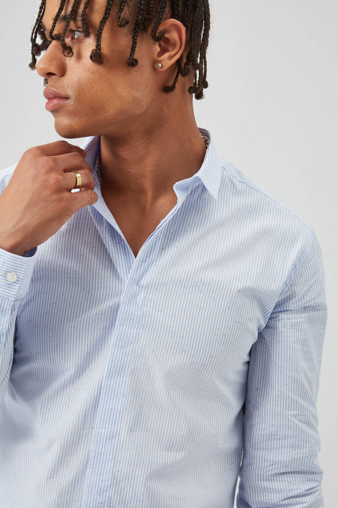 Curran Skinny Fit Blue Stripe Cotton Shirt