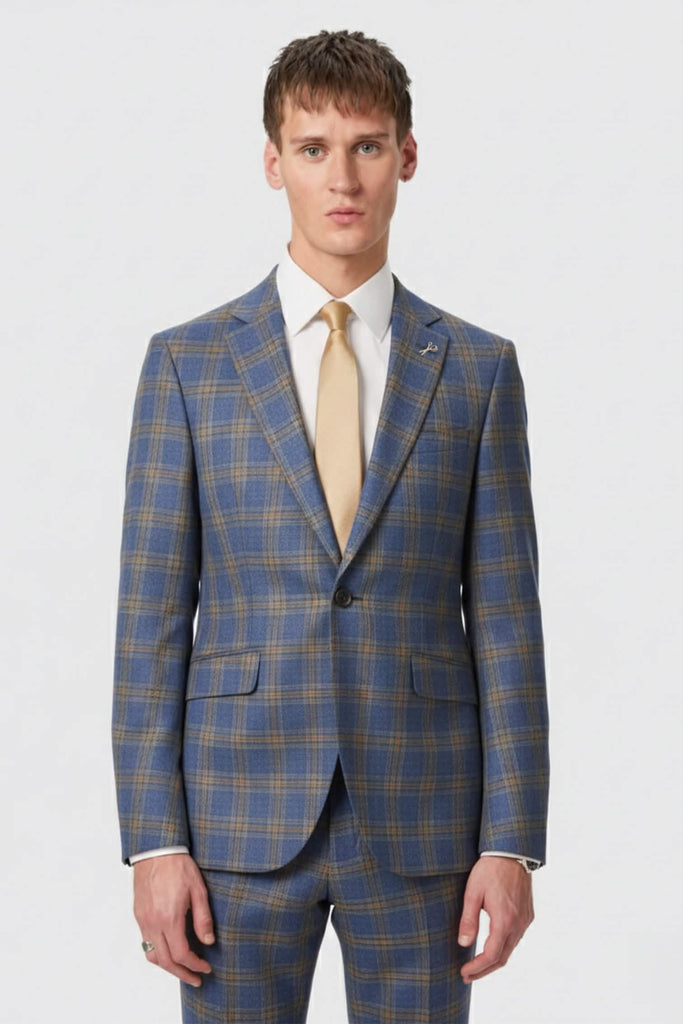 Grengall Slim Fit Blue Check Wool Suit Without Prejudice