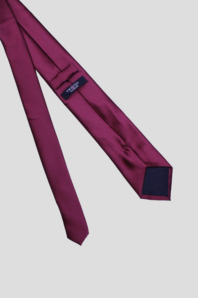 Complete your evening look with our Ellroy Tie in Burgundy. This versatile, satin-finish tie adds a touch of sophistication to any outfit. Pair it with our Papatya Black Jacquard Suit for a delicious evening ensemble.