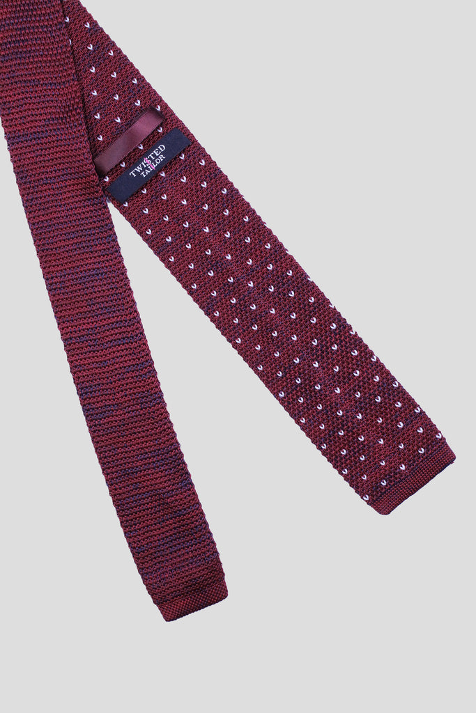 Add a touch of playfulness and style to your wardrobe with the Jagger Tie Burgundy Spot. This knitted navy tie features charming white spots and a squared off tip for a unique twist on traditional ties. Perfect for adding a touch of heritage and accessorizing your autumn looks.