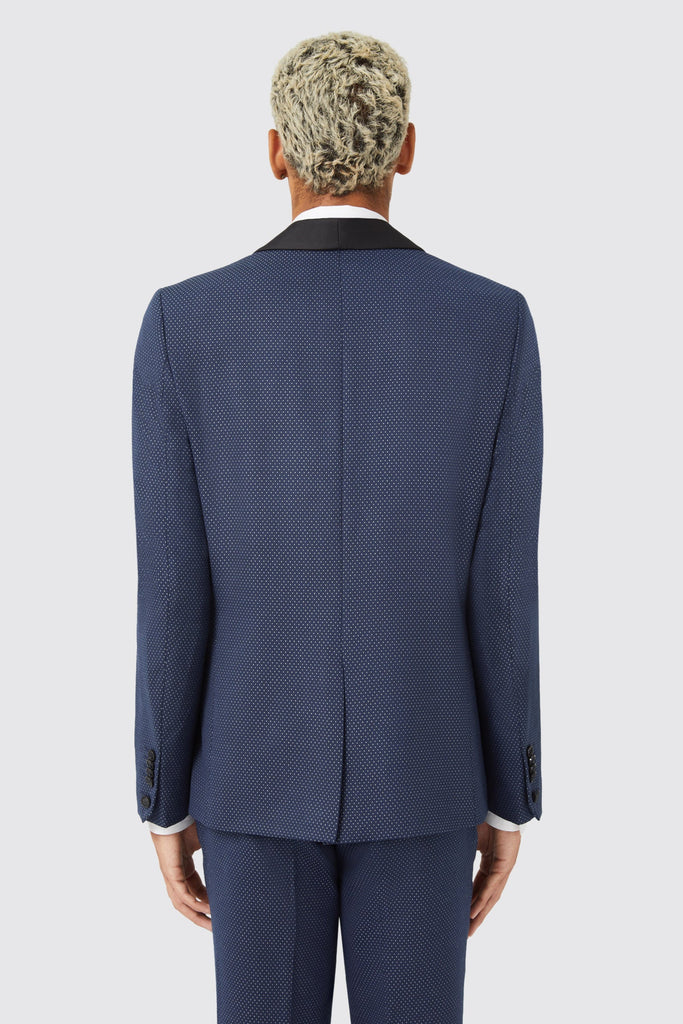 Get red carpet ready in the Neale suit, featuring an all over micro dot jacquard pattern and black satin trims, this 2 piece will turn heads at your next occasion. The Neale jacket is cut with a black satin lapel, jet pockets in contrast fabric, an outer breast welt pocket & double darts to shape to your body beautifully. The matching slim fit, flat front trouser features slanted pockets with contrast piping, belt loops & a rear contrast welt pocket. Pair this fancy suit with the TT x AM white satin 'Leeson' shirt, and a black bow-tie & prepare to look knockout.