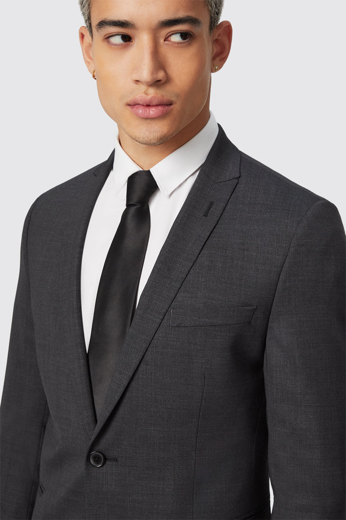 Introducing the Priory Skinny Fit Suit Charcoal Jacket from Without Prejudice, a timeless wardrobe staple. Made from quality wool fabric, this classic jacket are cut to a skinny fit and feature half lining, exuding sophistication and style. Elevate your look with this exclusive, tasteful piece.