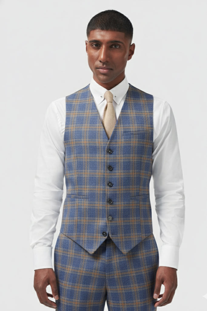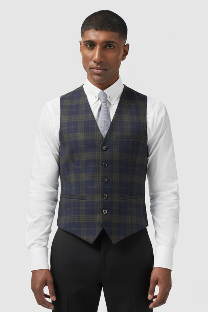Maynard Slim Fit Navy Check Waistcoat Shelby and Sons