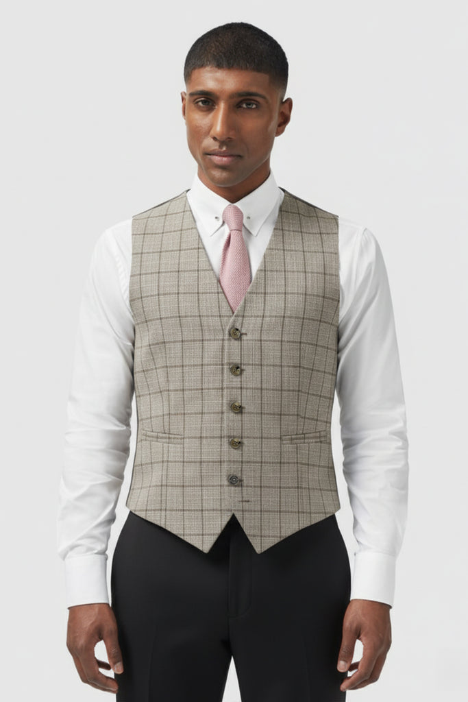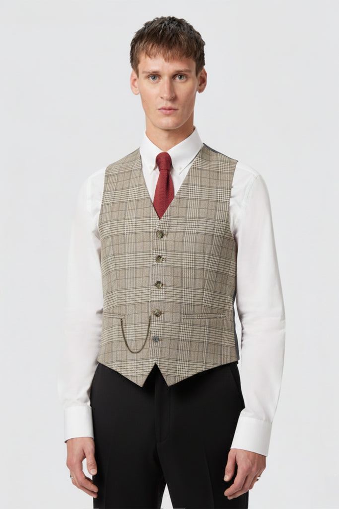 Wainwright Slim Fit Cream Check Waistcoat Shelby and Sons