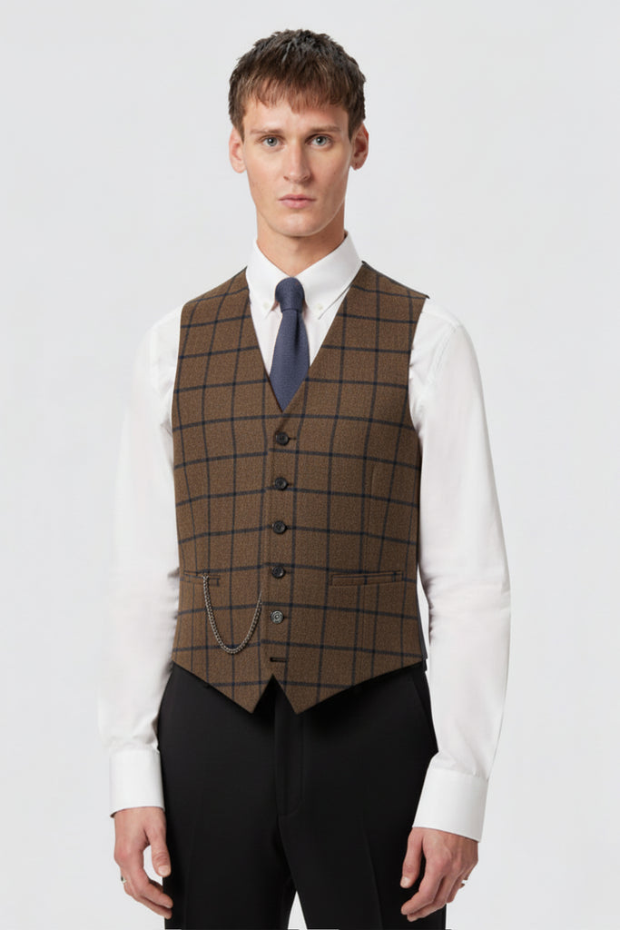 Roy Slim Fit Brown Check Waistcoat Shelby and Sons