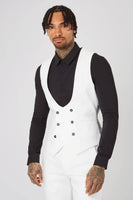 The Drake suit by Twisted Tailor is a modern take on the classic black suit. Cut to a contemporary skinny fit it's an understated men's black suit that makes a big impact. Wear for any occasion; from the boardroom to the bar, just switch up your white shirt for one of our skinny fit printed shirts. This double breasted black waistcoat is the perfect addition to your formalwear wardrobe; pair with the matching black suit jacket and skinny fit trousers for a 3 piece suit that works for a variety of formal occasions.