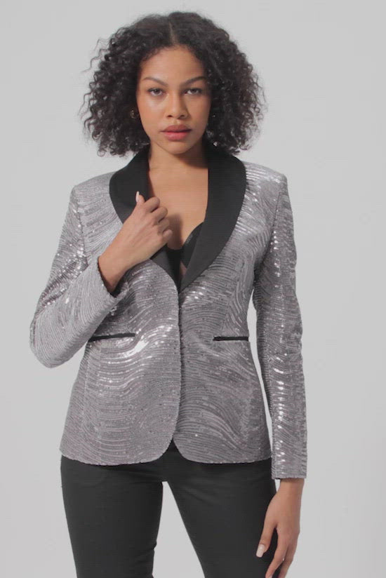 Swayze Sequin Tuxedo Jacket in Silver Twisted Tailor Womenswear