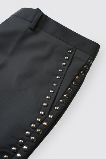 Aubrey Skinny Fit Black Metal Studded Wool Trousers