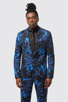 The classical detailing combined with the all-over floral flocking makes the Heron blue suit jacket a standout piece for any and all occasions. The jacket features a single button closure with a shawl lapel and jet pockets. The blue floral motif all over adds a bold twist to classic tailoring. Style the jacket with the matching skinny fit suit trousers for an opulent approach to formal-wear.