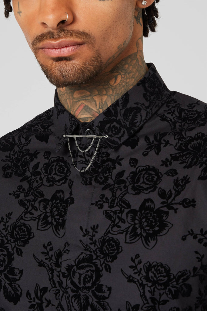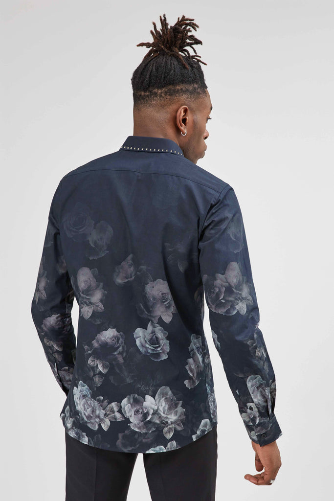 Sember Slim Fit Black Metal Studded Floral Shirt Twisted Tailor