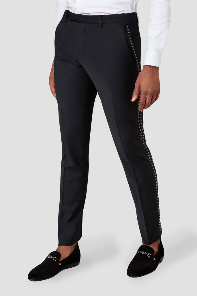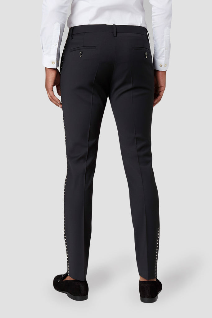 Aubrey Skinny Fit Black Metal Studded Wool Trousers Twisted Tailor