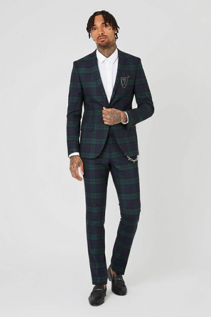 Viscous Skinny Fit Green Tartan Suit with Chain Detail Twisted Tailor