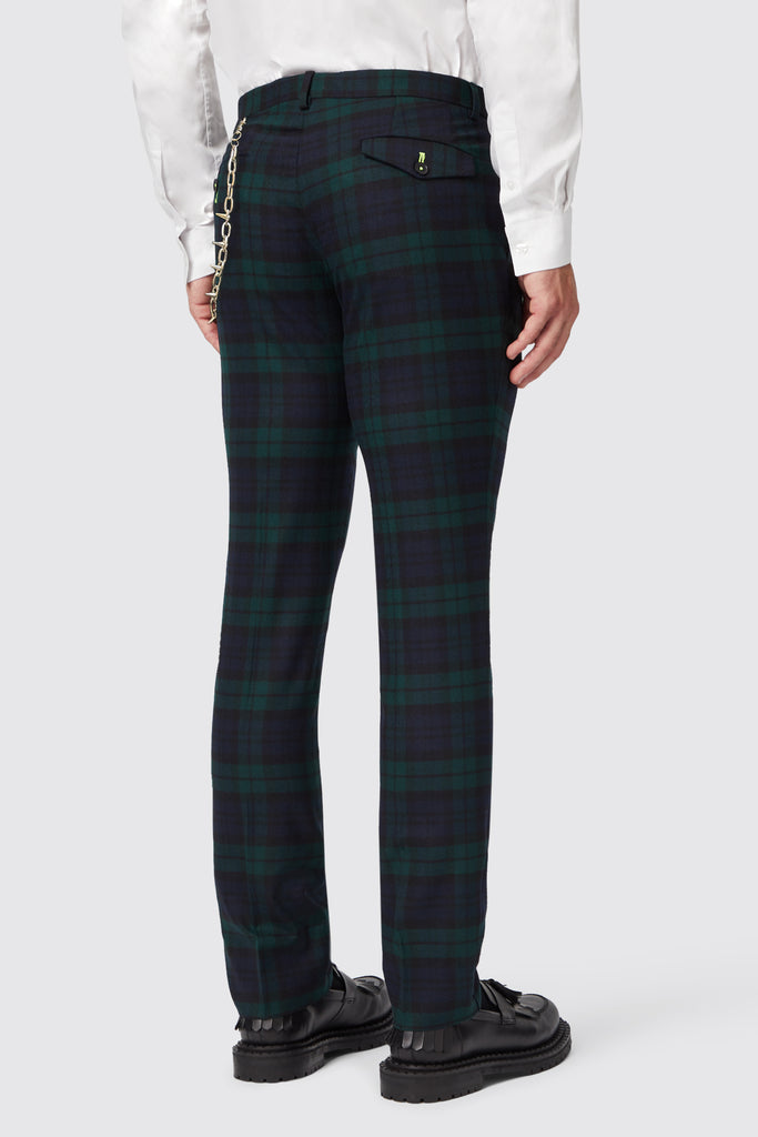 Viscous Skinny Fit Green Tartan Trousers with Chain Detail Twisted Tailor