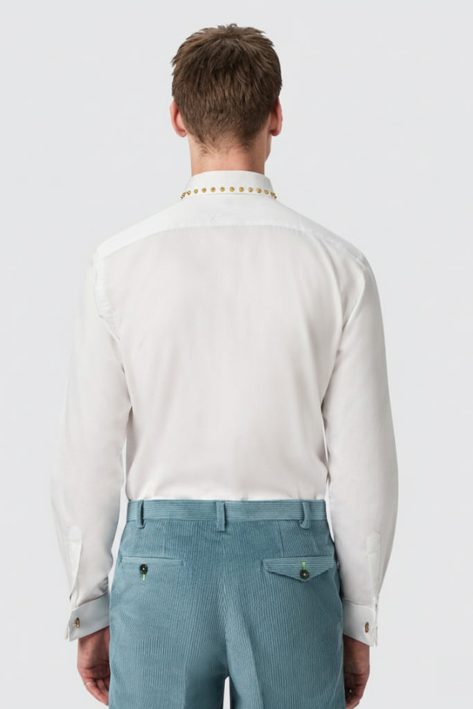 Leigh White Double Cuff Shirt with Gold Studded Collar Twisted Tailor