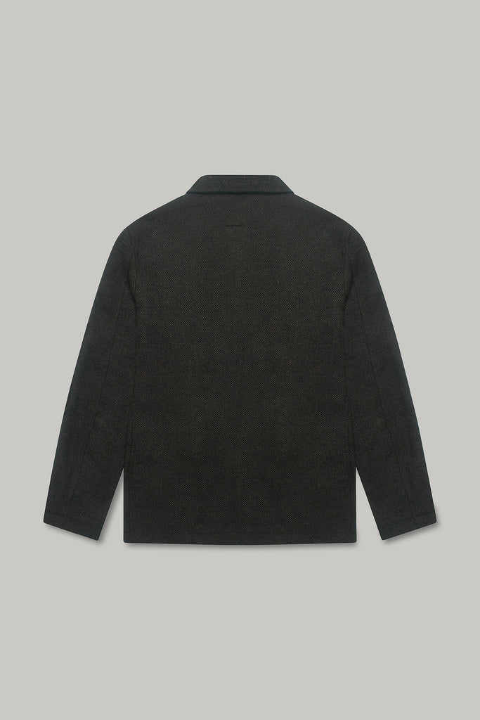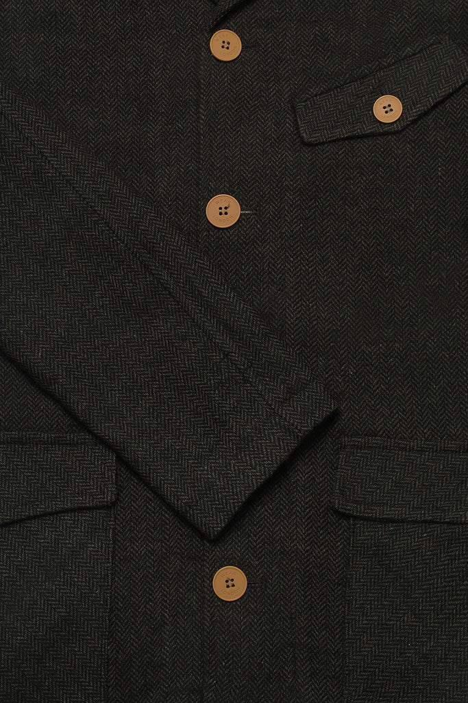Crafted in the UK, it features a notched collar, four-button front, and slanted button-up chest pocket for a refined yet relaxed look. Finished with contrast buttons and orange seam binding, it’s designed with subtle detailing that sets it apart.