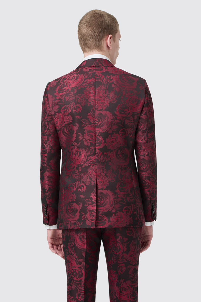 Ersat Skinny Fit Red Floral Jacquard Tuxedo