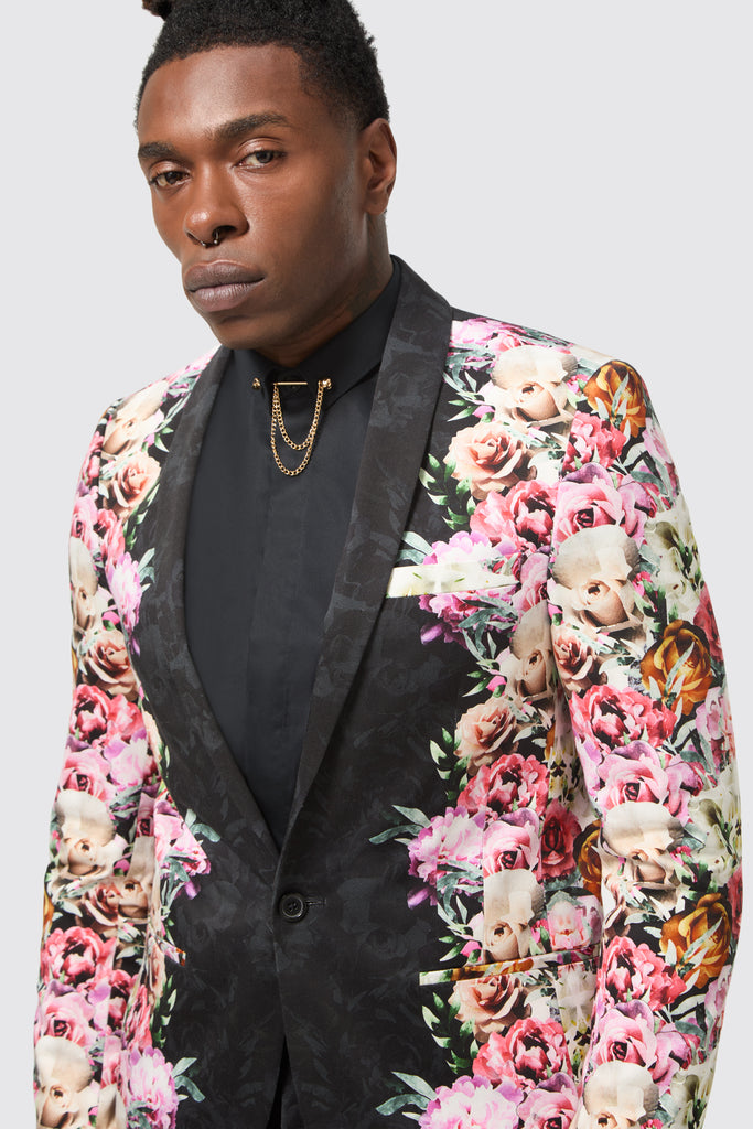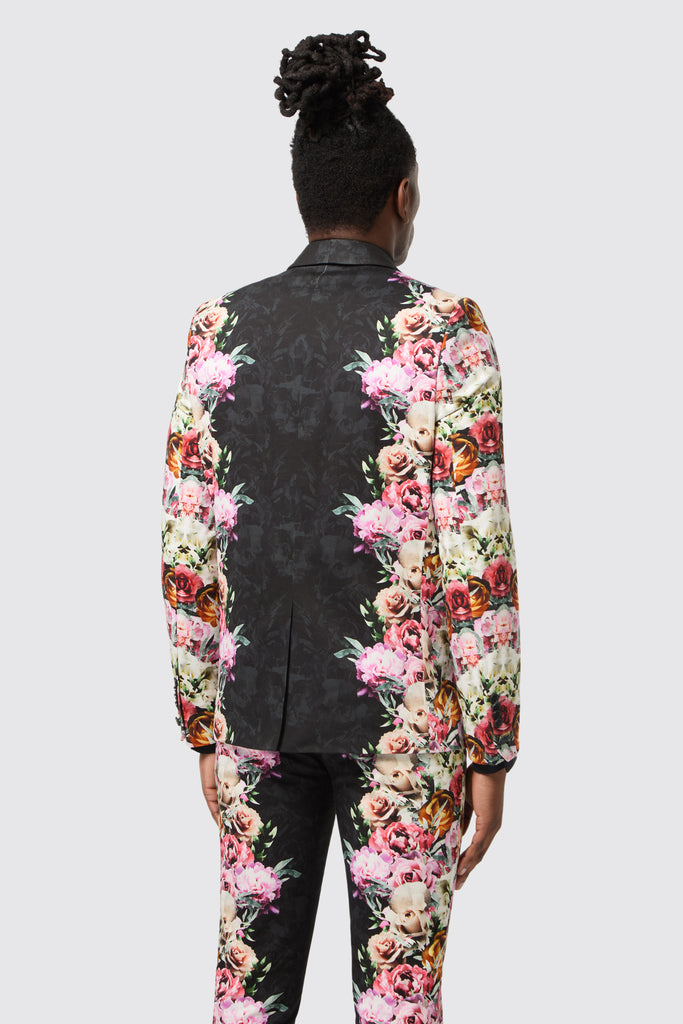 Add an extra oomph to your wardrobe with this standout number. The Ikeda floral suit was designed for those who dare to be different. Cut from a lightweight cotton blend, it's the perfect piece for summer occasions here or abroad. The jacket features a single button closure with a shawl lapel, straight flap pockets. Style the jacket with the matching trousers and a slim fitting shirt to complete the full look.