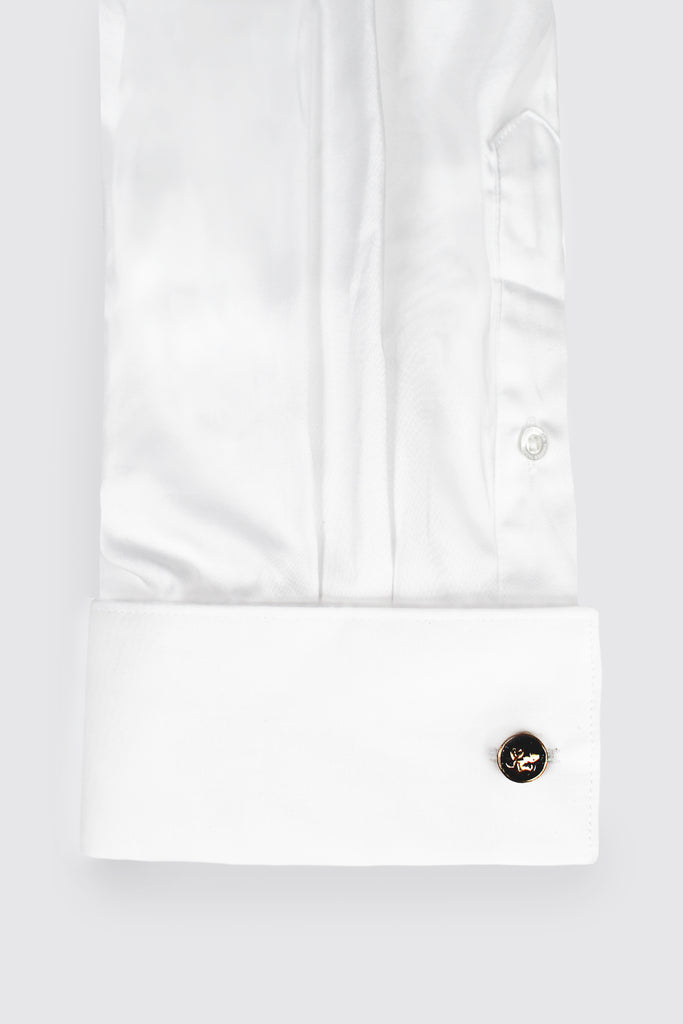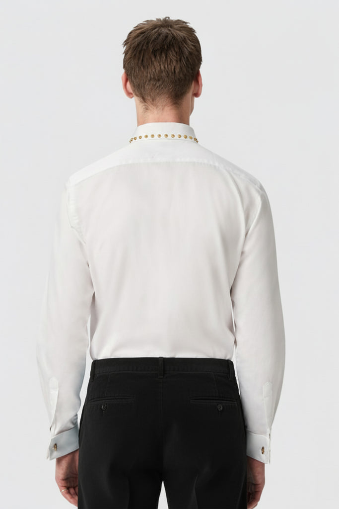 Leigh White Double Cuff Shirt with Gold Studded Collar