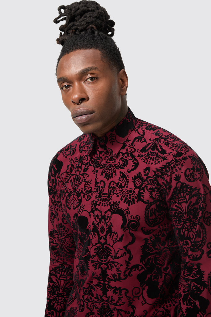 Linforth Slim Fit Burgundy Shirt with Flocking
