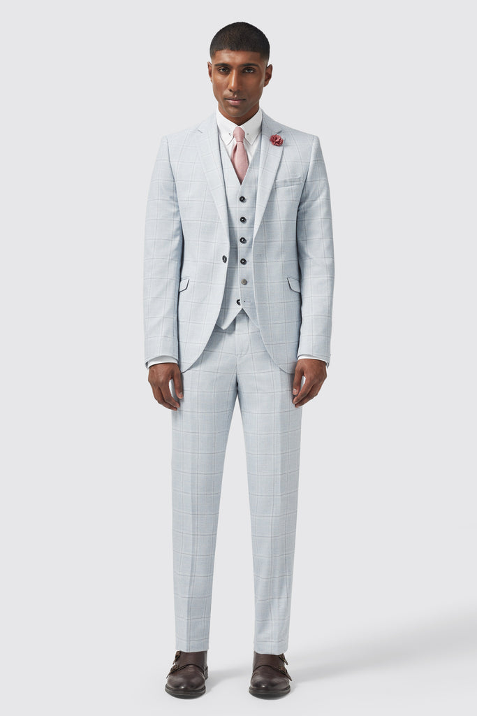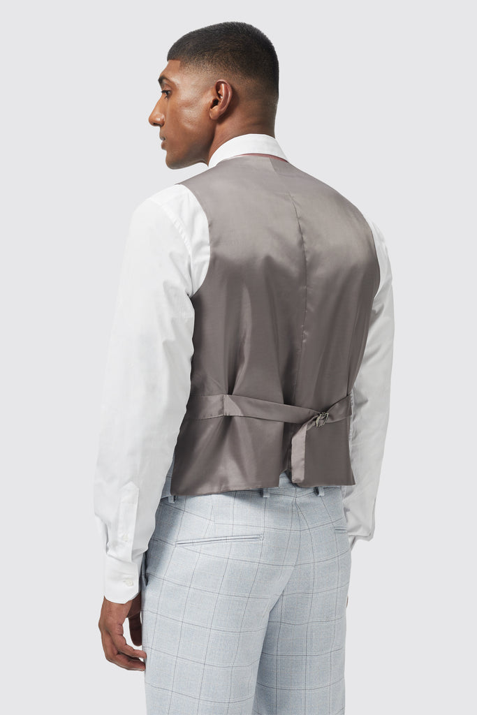 The Richmond Light Blue Check Suits from Shelby & Sons is the perfect Summer Wedding 3 piece. Traditional and heritage inspired this suit could also be the perfect look for your next day at the races. This single breasted waistcoat features two welt pockets, single darts on the front and a buckle adjuster on the back. Pair this waistcoat with a crisp white shirt and the matching jacket and trousers for the ultimate formal look.
