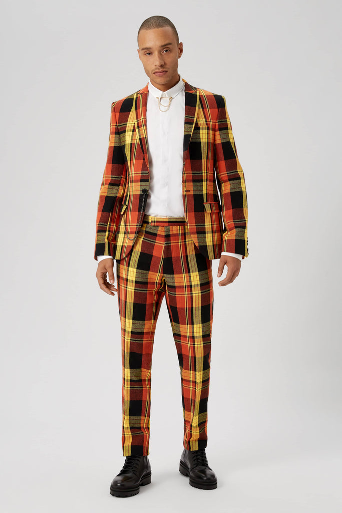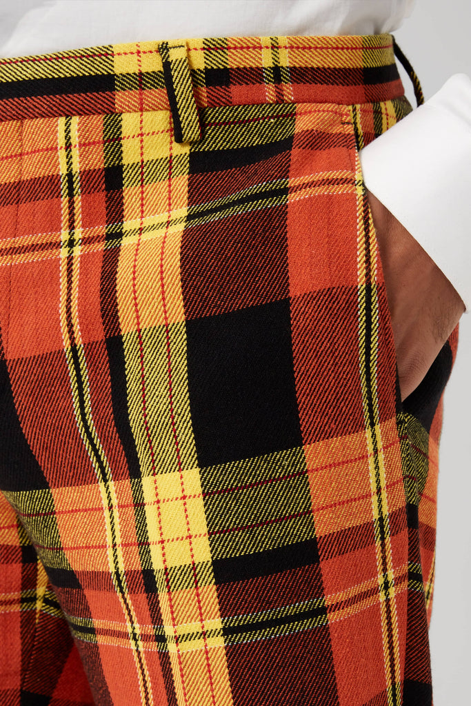 Spendolini Skinny Fit Orange Tartan Cotton Trousers