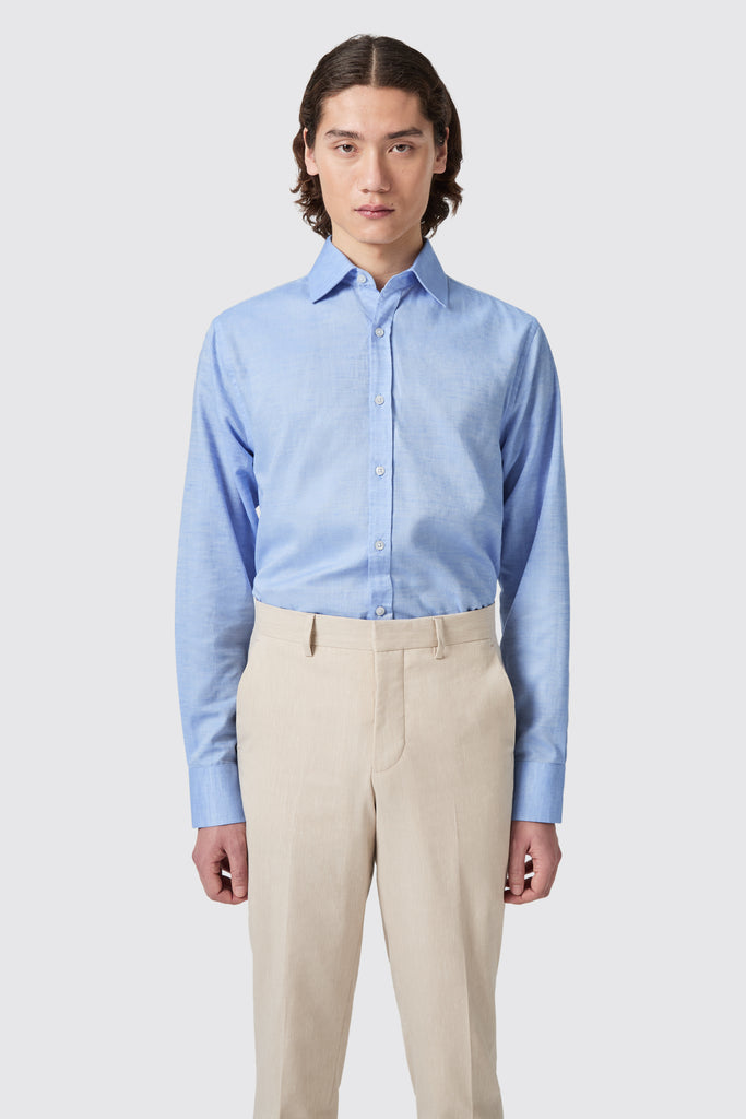 Special event on the horizon? Tie your look together with a crisp blue fitted shirt. The Grafton is crafted from a soft cotton and linen blend and features a single cuff spread collar and a single mitred cuff. Pair the shirt with your most-loved tailoring pieces and some smart shoes to complete the full head to toe look.