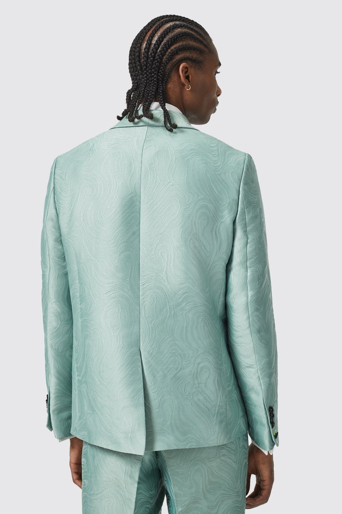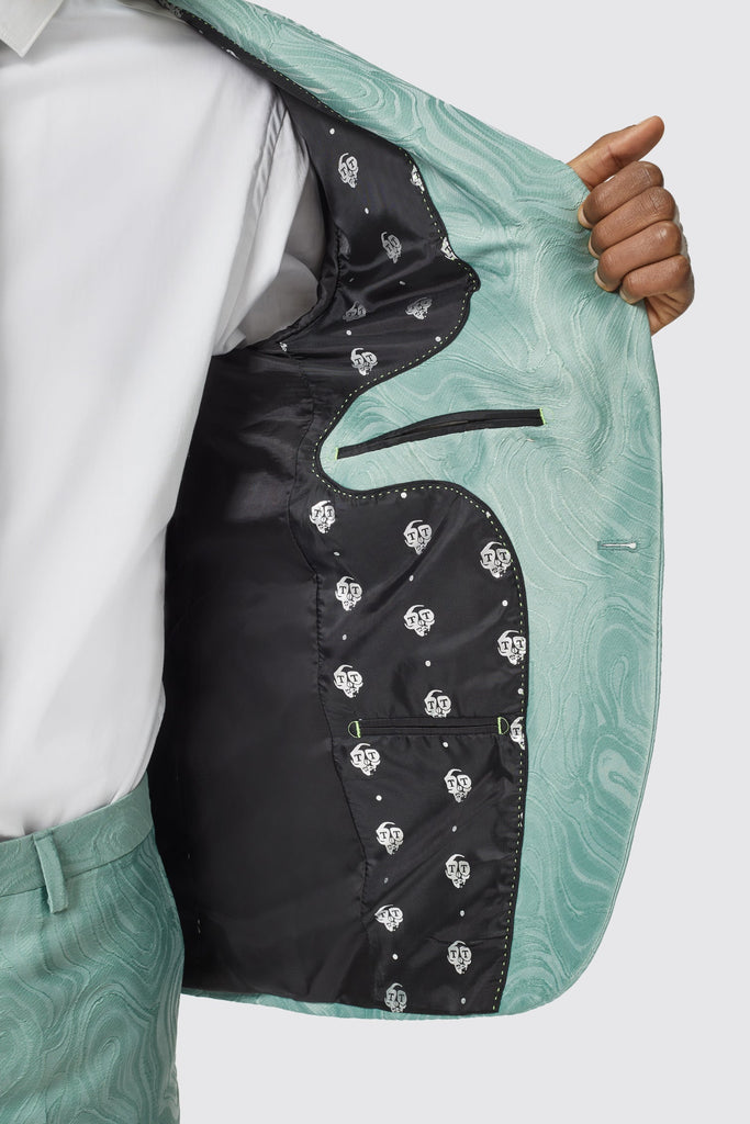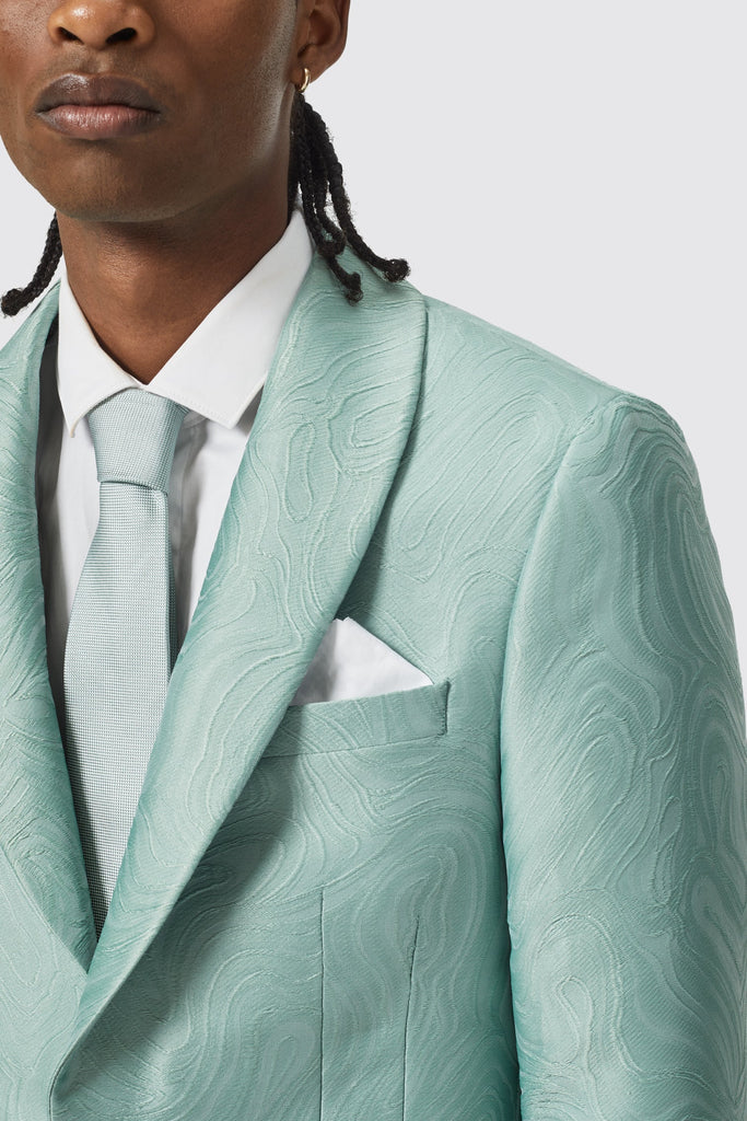 Level up your formalwear in the Gordimer suit from Twisted Tailor. This beautiful sage green suit features an all-over swirl jacquard, perfect for partying in. The jacket is cut with a shawl lapel, jet pockets, double darts & an outer breast welt pocket. The matching slim fit, flat front trousers feature slanted front pockets and belt loops. Wear this 2 piece to your next event with a tonal tie and a fresh white shirt and hit all the right notes.