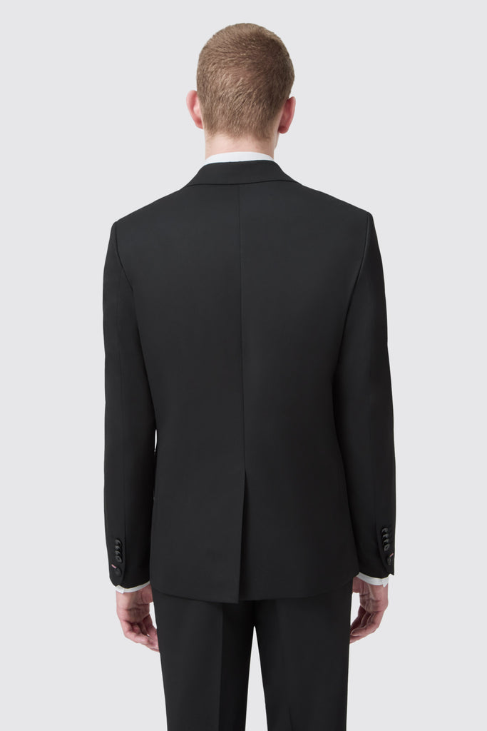 • Sharp skinny fit with a 6.5cm notch lapel and structured double darts for a sleek silhouette