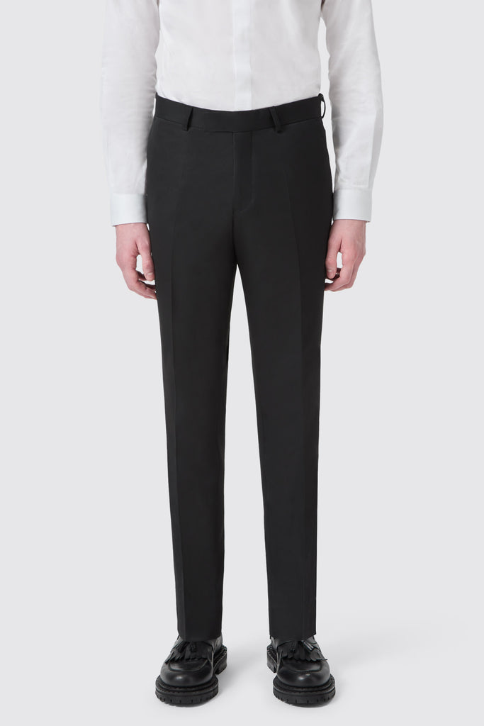 • Matching trousers with a clean, skinny fit, flat front, and slanted pockets