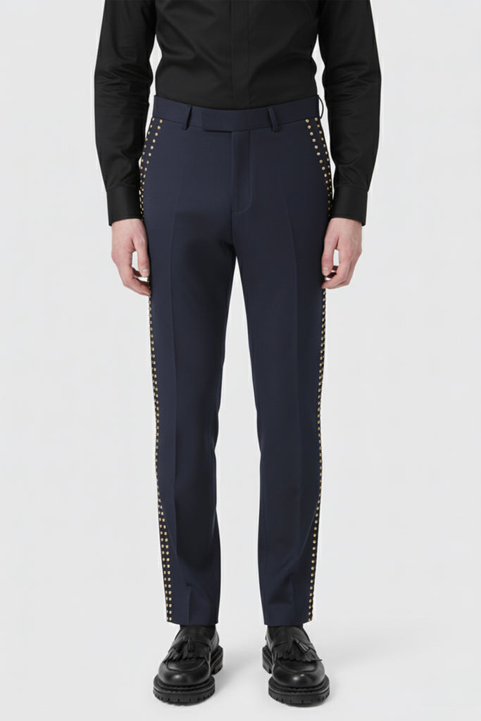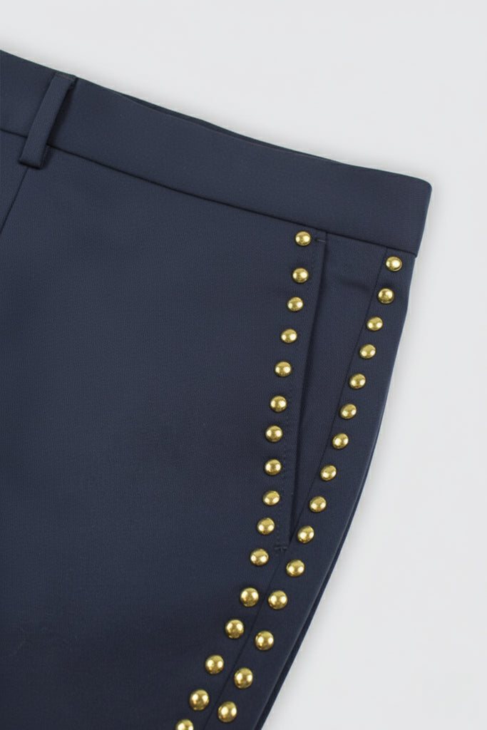 The Dahlia Trousers bring modern tailoring to life with a rebellious twist. Detailed with gunmetal studs running along the outer seams for a bold, refined finish.
