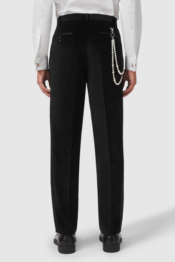 Magnum Slim Fit Black Velvet Tux Trousers With Pearl Chain