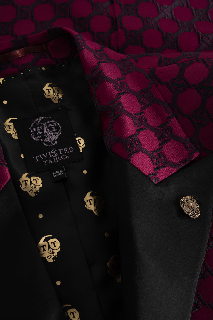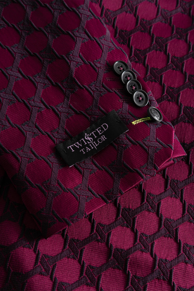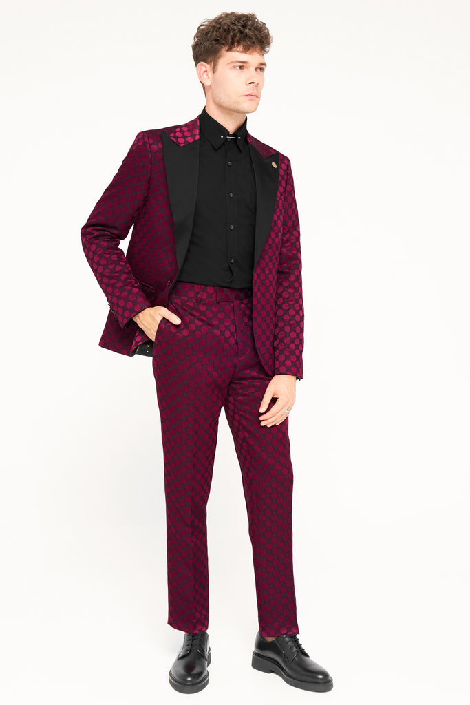 After a fail-safe suave 2-piece suit? The Papatya from Twisted Tailor will deliver. Crafted from a burgundy jacquard print, this suit offers an expensive look without the huge price tag. The jacket features a peak lapel, single button closure and kissing buttons on the sleeves. Style the jacket with the matching suit trousers to complete the full look.