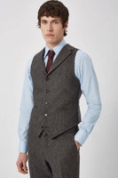 Cut from a classic dark brown wool blend fabric the Uptown dark brown waistcoat shows off the best of British style. This waistcoat can be paired with the matching jacket and slim fit trousers for a contemporary spin on a classic 3 piece suit.
