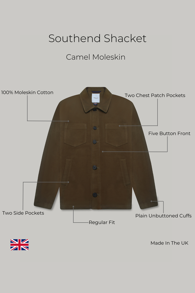 Crafted in the UK from our bestselling Italian brushed cotton moleskin, it combines timeless tailoring with rugged build quality and year-round versatility.