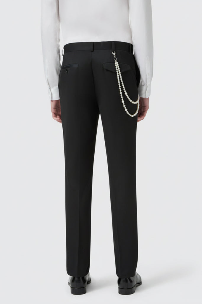 Tyson Slim Fit Black Tuxedo Suit Trousers With Pearl Chain
